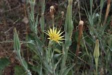 Yellow salsify (Tragopodon dubius) has greyish, narrow leaves (vs dandelion’s wider green ones), and a much broader flower and larger seed head than dandelion (it’s like a regular dandelion ate a Super Mario mushroom). It is an annual (or, occasionally, biennial).