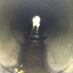 Road culverts are usually smooth and often steep. This make the stream flowing through them fast, and often shallow in the summer. This in turn makes it difficult for fish to swim upstream. The ideal restoration solution is to replace the existing culvert with a bottomless arch culvert or another solution that presents river rock at ground level instead of concrete or steel. There are times, however, when that’s too expensive for