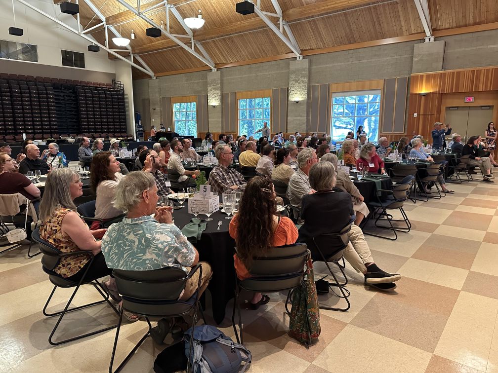 On May 25, the JCWC Annual Celebration was held in Kaul Auditorium at Reed College for the first time since 2019. More than 100 people gathered for social hour, dinner, silent auction, Year-In-Review slideshow, and to honor Riffle Award winners. Thank you to everyone who attended, our business sponsor, and our Riffle Award winners!
