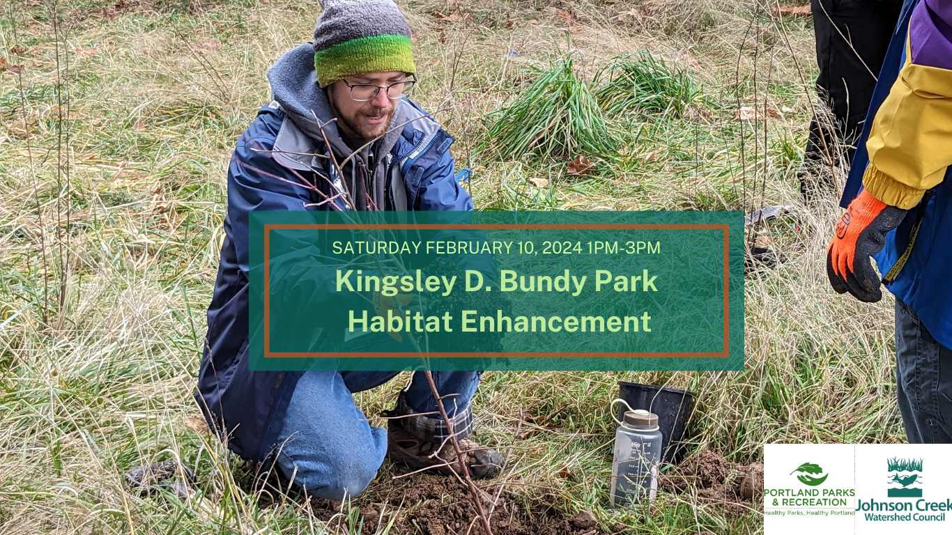 Join the Pleasant Valley Neighborhood Association and the Johnson Creek Watershed Council for a morning of stewardship and habitat enhancement! Kingsley D. Bundy Park is a small, hidden gem along Johnson Creek in SE Portland. No experience necessary!
