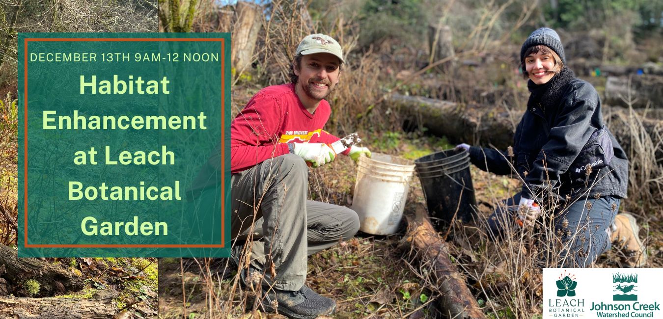 Since 2018 Johnson Creek Watershed Council has been working with a group of partners to restore 5 acres on the east side of Leach Botanical Garden that borders Johnson Creek. The partnership includes: Wisdom of the Elders, Inc, African Youth Community Organization, The Blueprint Foundation, David Douglas High School, Leach Botanical Garden, along with help from experts at Portland Parks and Recreation, and many dedicated volunteers.