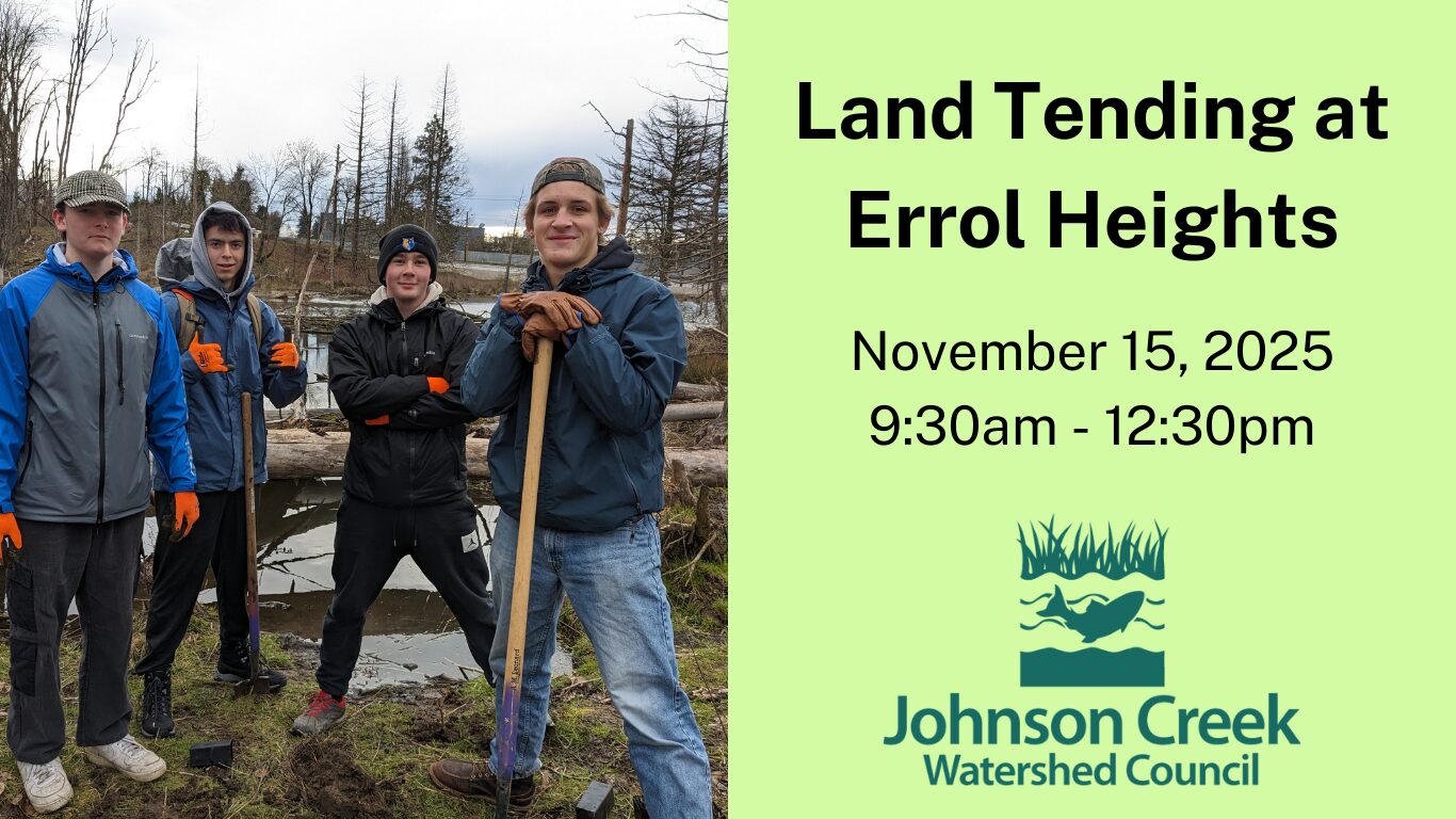 Thank you to our funders and partners for supporting watershed health. The Mintkeski Family Fund of the Oregon Community Foundation, Portland General Electric, The City of Portland’s Bureau of Environmental Services, Friends of Errol Heights and Portland Parks and Recreation.