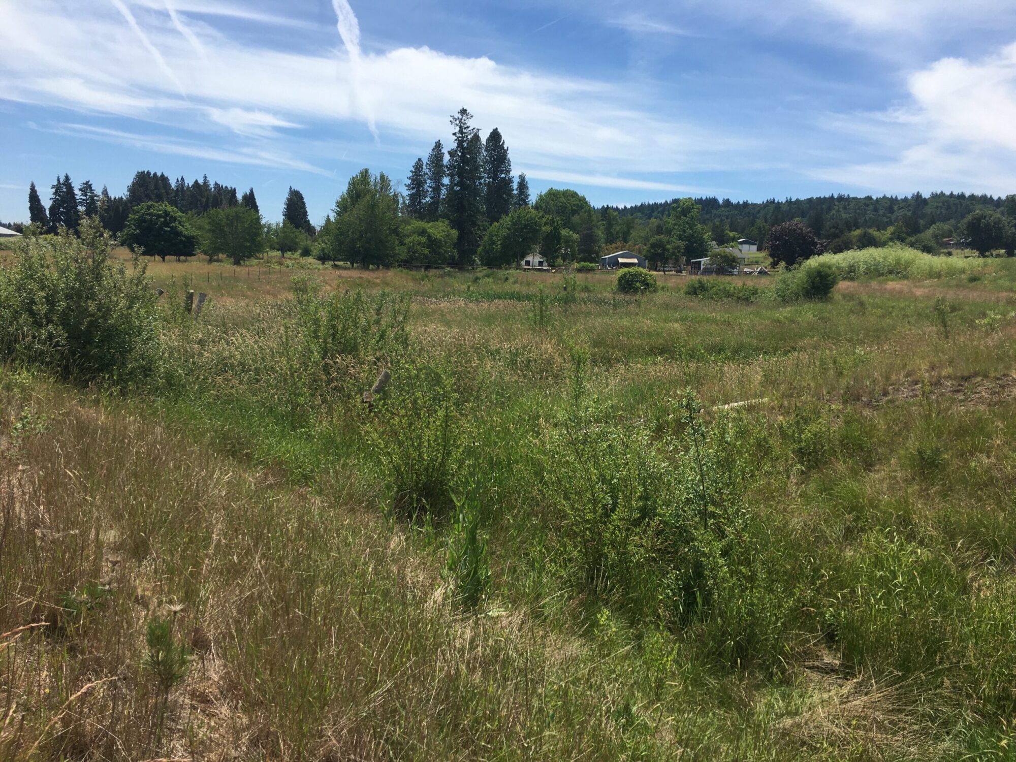 Long-time readers of JCWC’s publications (both print and online) might remember a project the Council completed several years ago on property owned by the Centennial School District in Pleasant Valley. Mitchell Creek, which runs south-to-north across the property before meeting Kelley Creek (a major tributary to Johnson Creek) on the neighboring lot, was seeing enormous temperature increases (as much as 14 °C = 25 °F!) because a previous owner of the property had impounded and broadened the stream to create an inline pond. The creek was also inaccessible to migrating fish due to an impassable culvert at the downstream end of the pond. In summer 2019, JCWC used funding from multiple sources (including the East Multnomah Soil and Water Conservation District, Metro, Oregon Department of Environmental Quality, Portland General Electric, the Oregon Watershed Enhancement Board, and the US Fish and Wildlife Service) to remove the earth berms and culverts at the upstream and downstream ends of the pond, allowing the stream to flow freely for the first time in decades. We also seeded and replanted within, adjacent to, and downstream of the former pond footprint to provide shade and better habitat.
