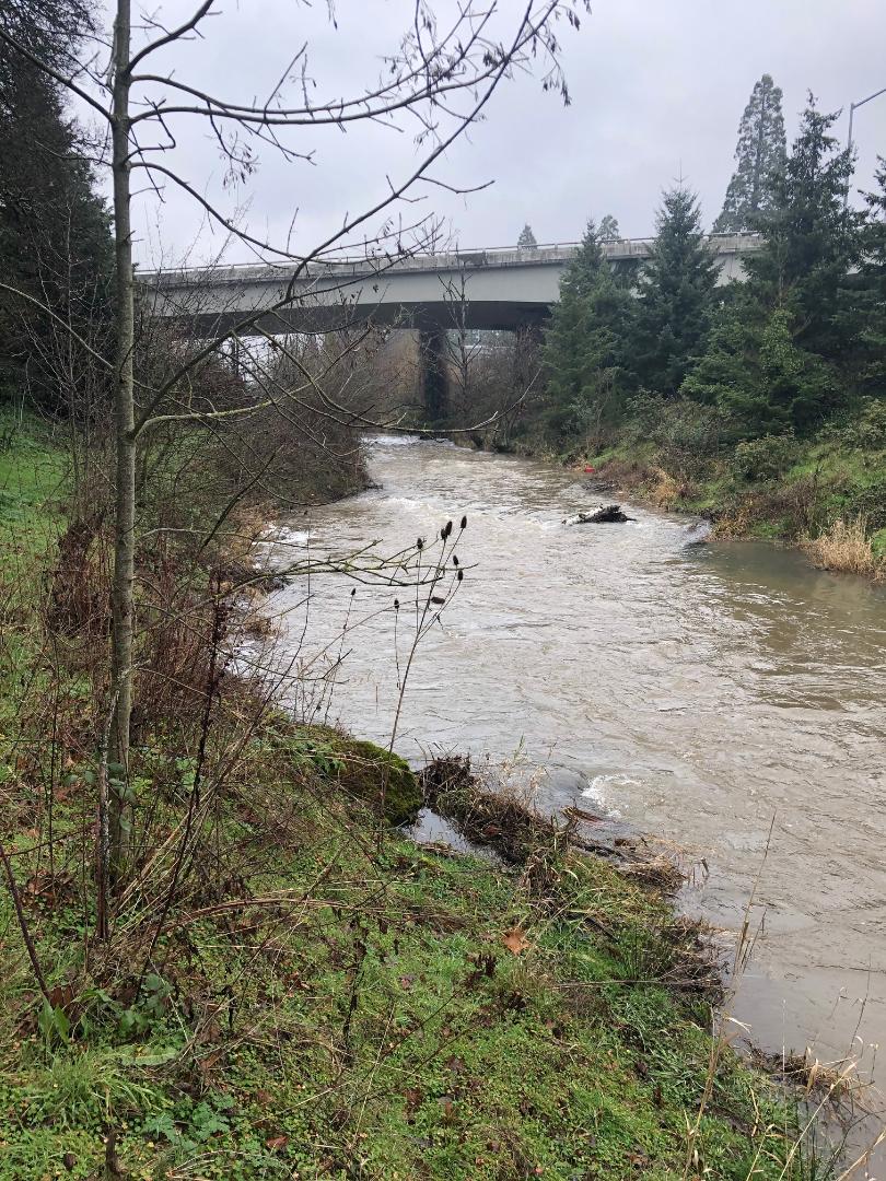 Our project sought to provide this type of habitat diversity for the primary purpose of salmon rearing and resting habitat. This reach of creek also has several cold water inputs, where former tributary streams were piped and paved over, but still flow into Johnson Creek. The combination of the colder water with pools and log structures for cover would make excellent salmon habitat! A secondary function of these log structures and pools is to help the creek with natural flow processes such as low flow channel formation, creating and maintaining pool habitat, buffering flow velocities during periods of runoff and sediment accumulation. Given the shape this reach of creek was in before our project, we were cautiously optimistic of the potential results.