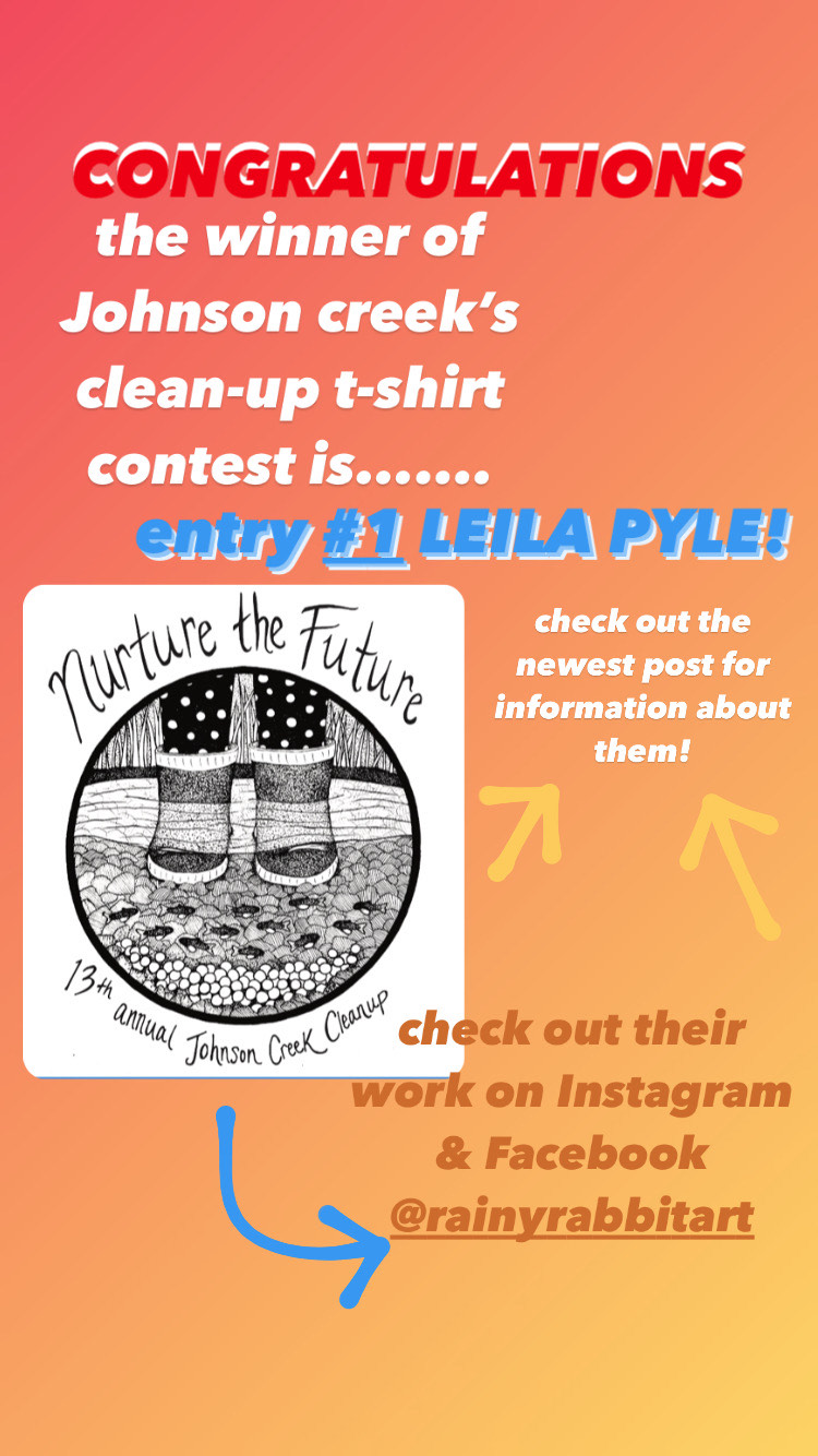 A big thank you goes out to all of the artists who submitted work for this years Tee shirt contest. Leilia’s artwork will be featured on the Tee shirts for the Johnson Creek Clean up August 22nd. We had some really strong submissions this year and want to thank everyone who sent in artwork.