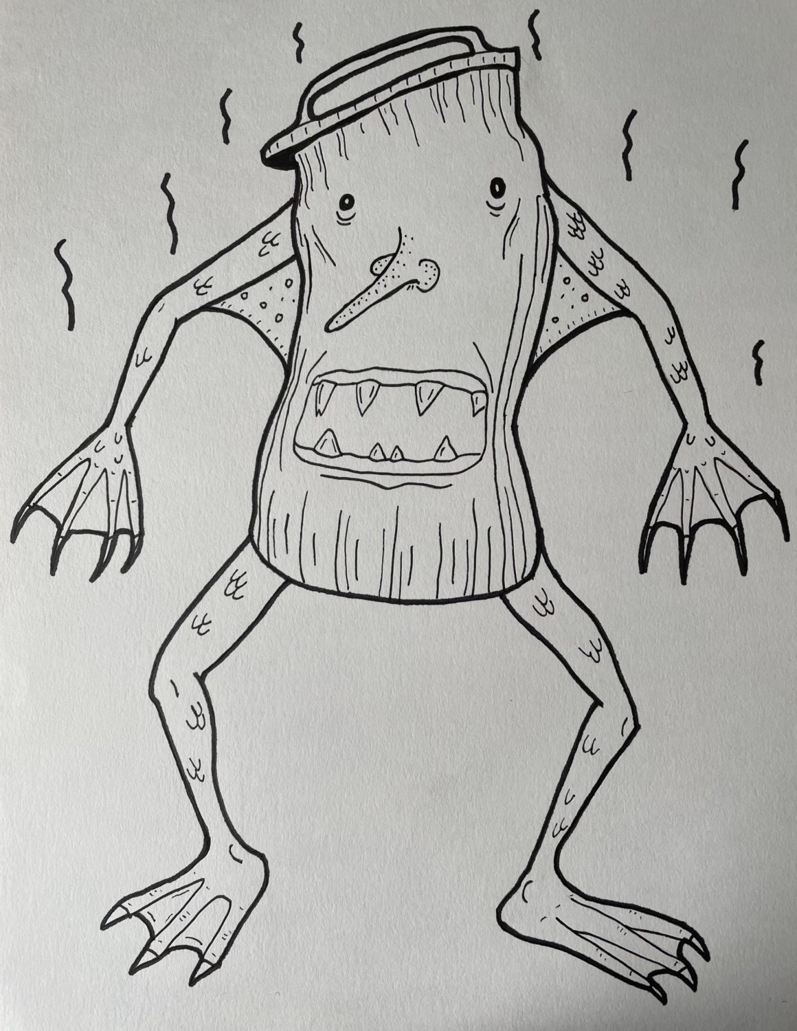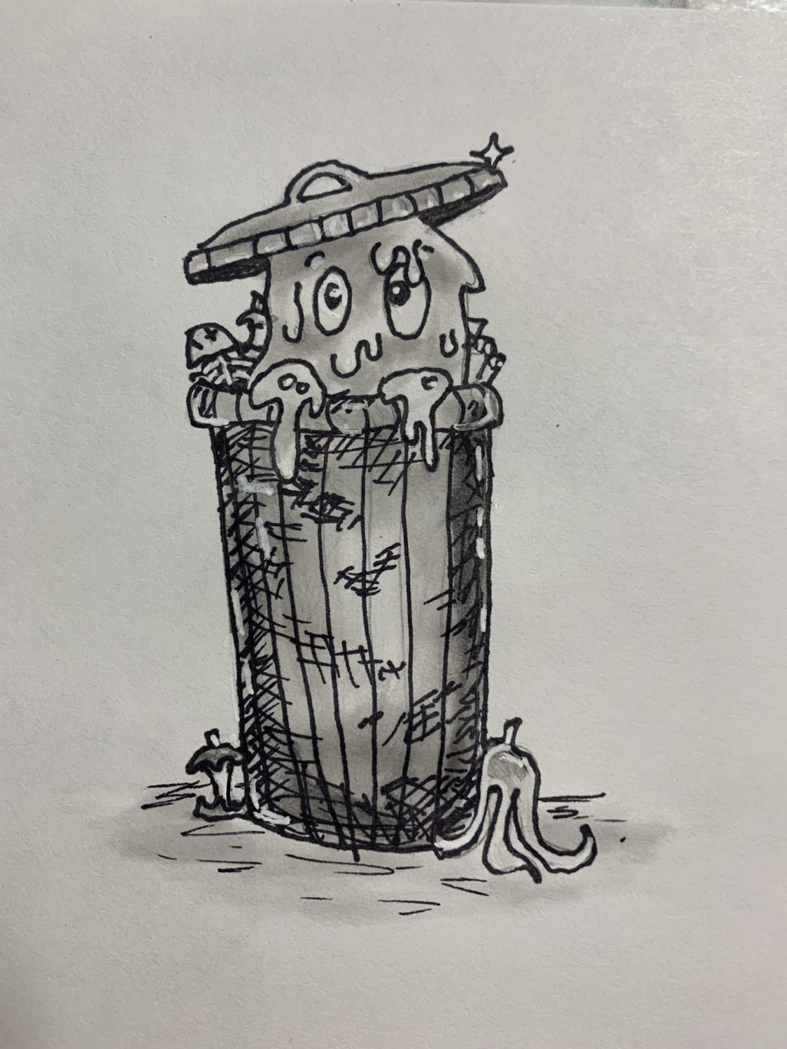 Choice B – slime-like subject, inside trash can surrounded by trash