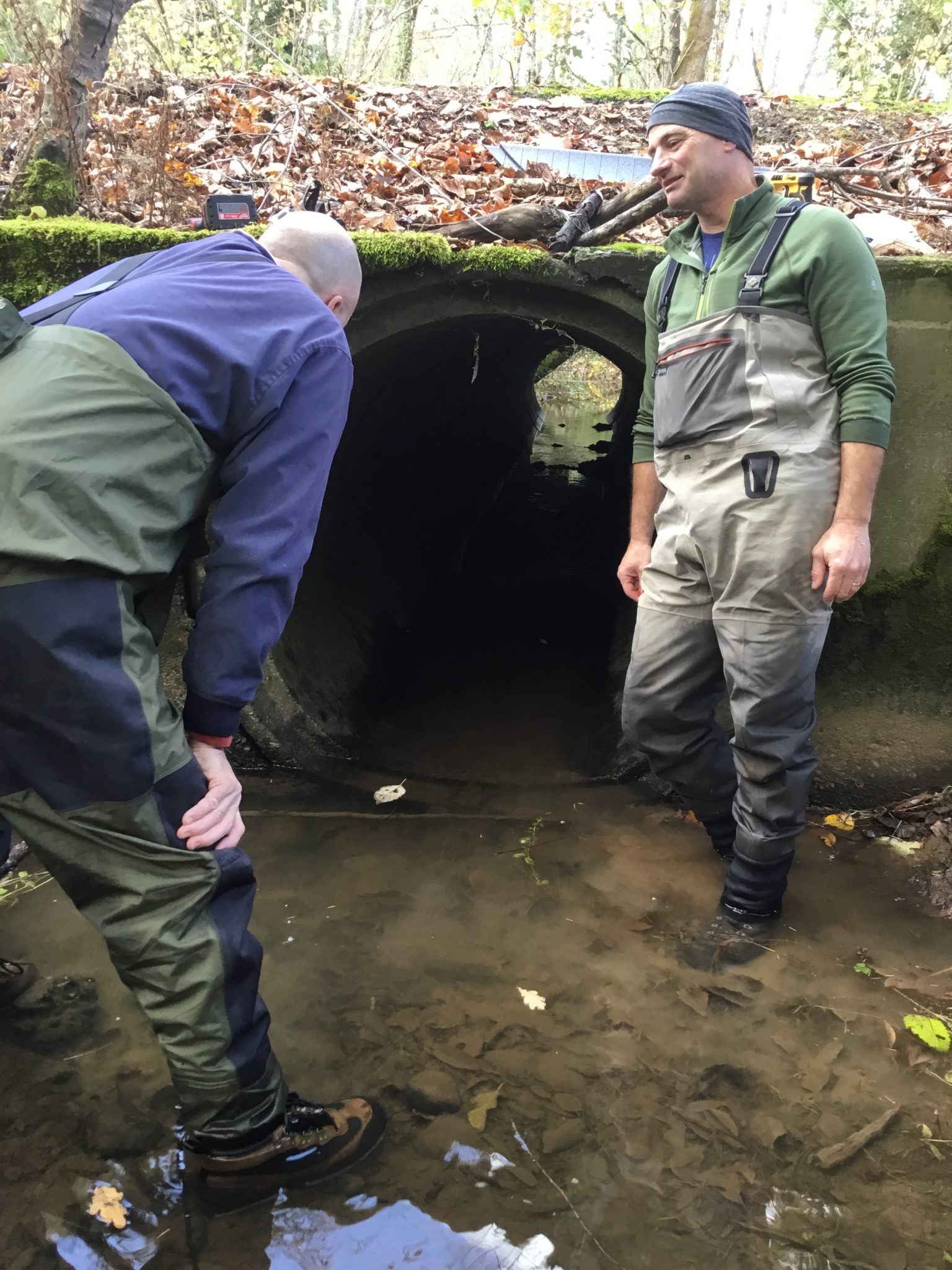 Road culverts are usually smooth and often steep. This make the stream flowing through them fast, and often shallow in the summer. This in turn makes it difficult for fish to swim upstream. The ideal restoration solution is to replace the existing culvert with a bottomless arch culvert or another solution that presents river rock at ground level instead of concrete or steel. There are times, however, when that’s too expensive for