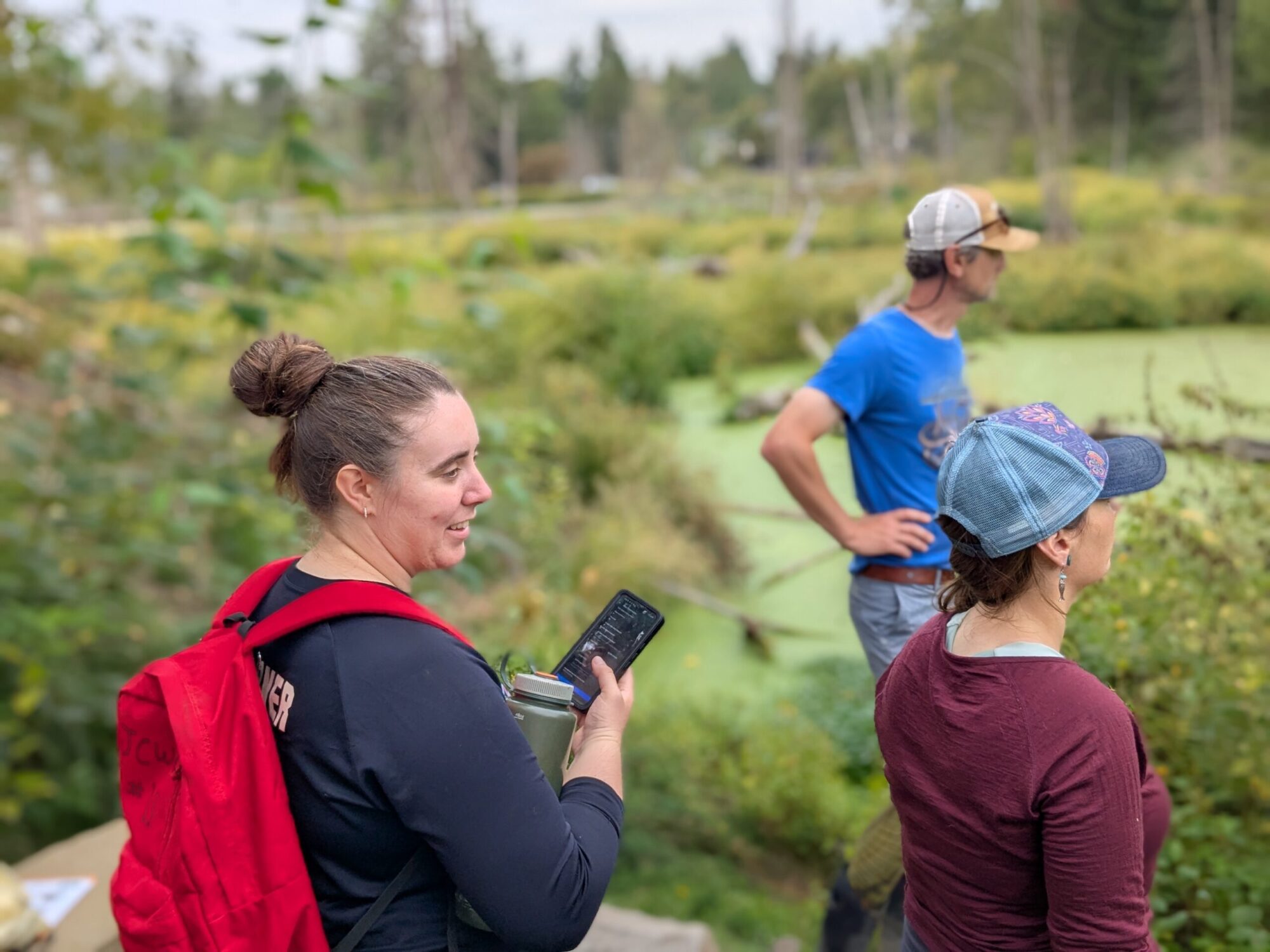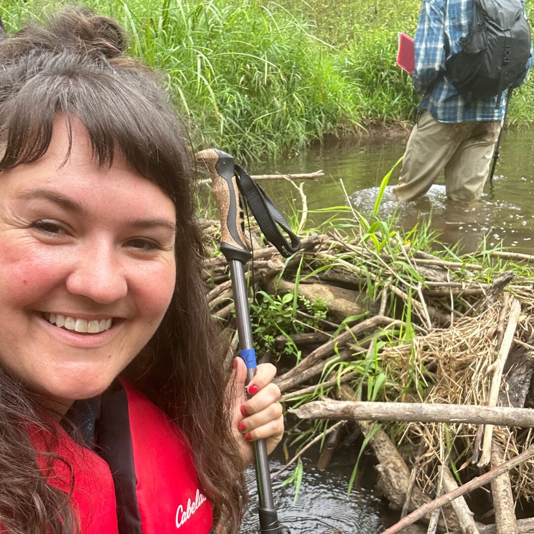 Over the log and through the creek to Beaver’s house we went. During this year’s beaver surveys, some sites had surveyors scrambling over brush and logs, giggling as they slipped into the water, and stopping for berries along the way. Each year around September, teams of surveyors spread throughout the watershed in search of beaver activity. Dams and lodges are recorded on Anecdata with activity such as beaver chews, slides, or scent mounts noted. All of this work without seeing an actual beaver!