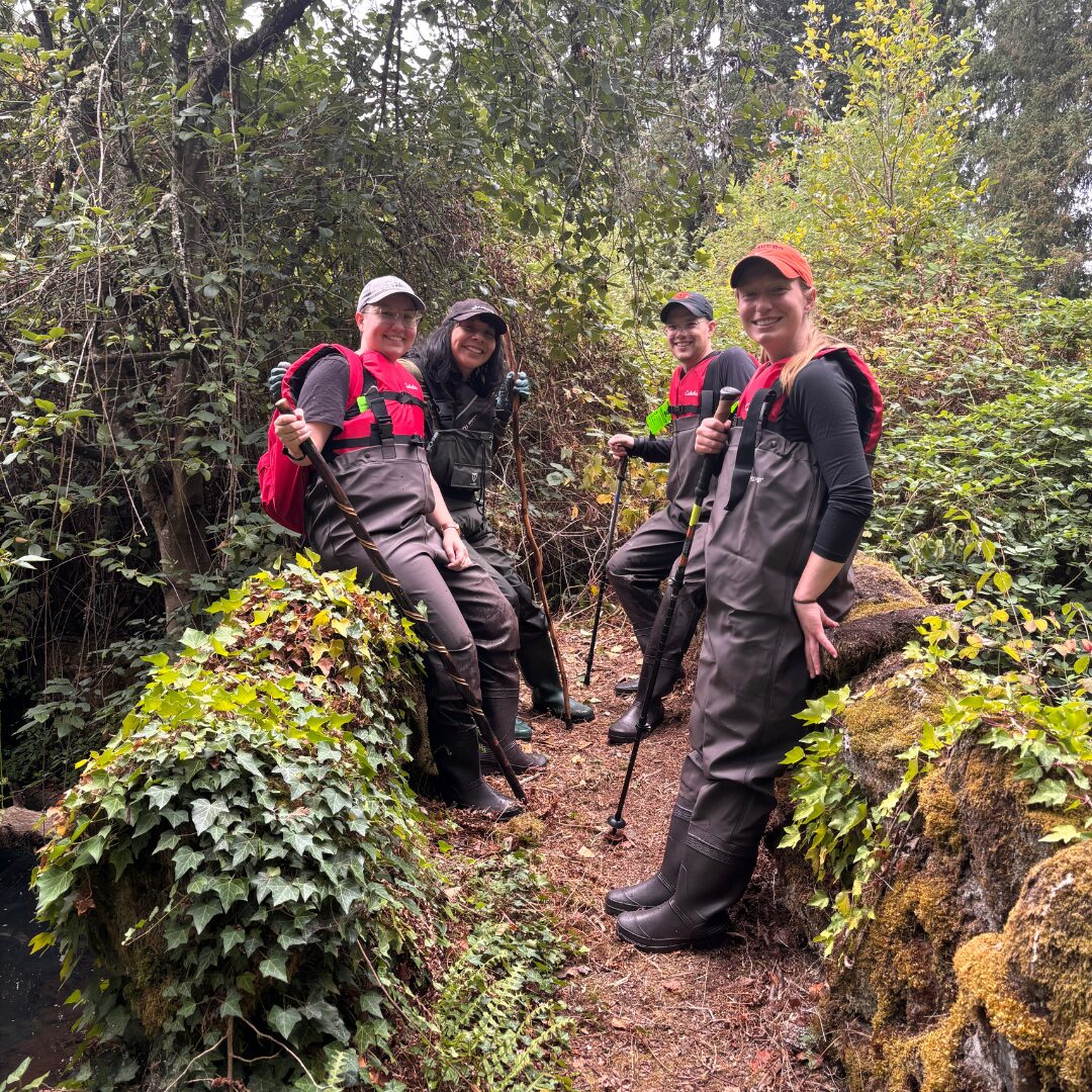 This year surveyors spotted over 60 dams in the Johnson Creek watershed! The increase in habitat has produced much needed diversity within the creek for salmon and other species. The ponding that occurs from the dams has deeper, calmer water that can pull coolness from the bottom substrate. This cooler water is beneficial for salmon during all stages. The slower water also helps to stabilize the soil and reduce erosion in the riparian areas, especially during high rain events. The vegetation that grows at the edge of the water and on the banks help protect vulnerable species such as young salmon, macro invertebrates, and amphibians.
