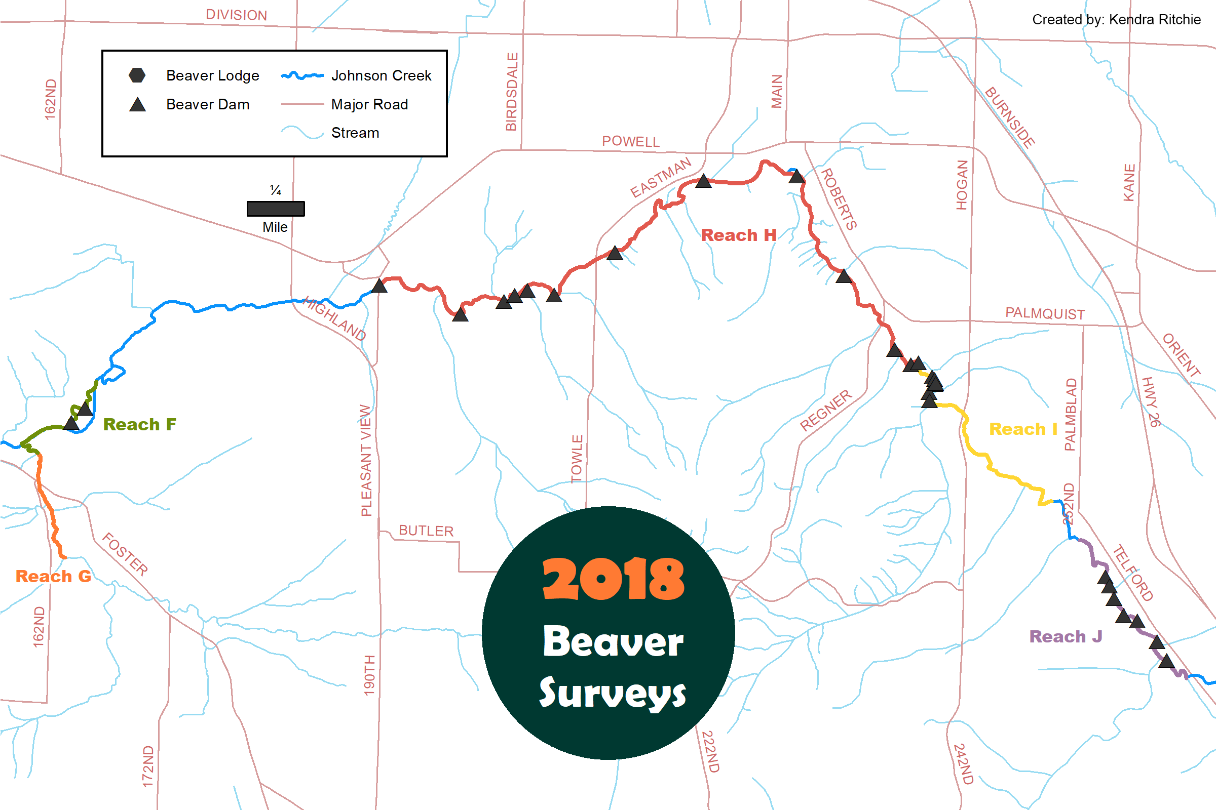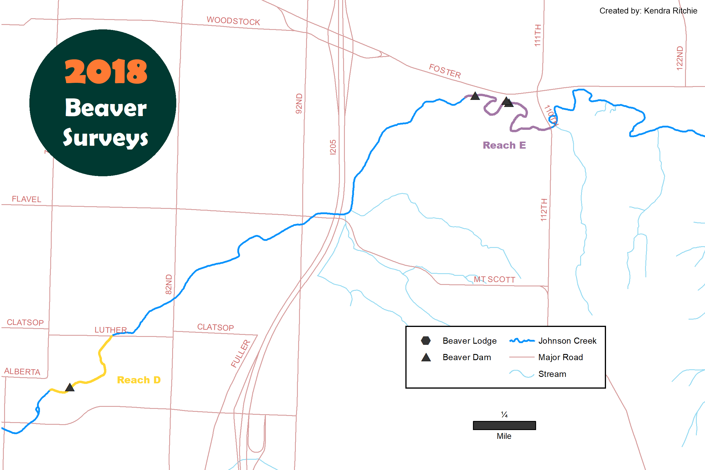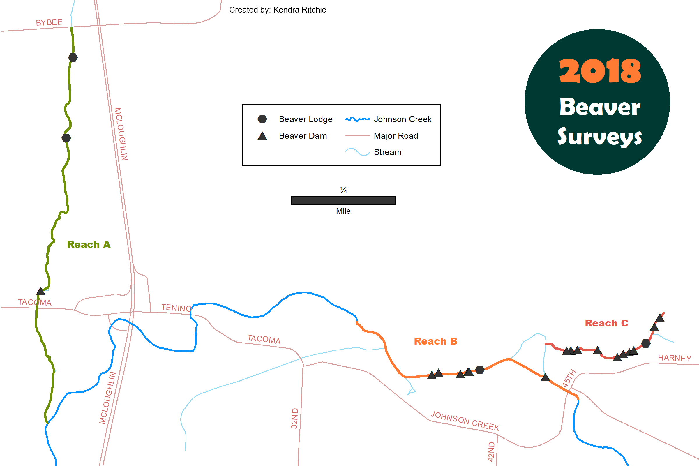 Reaches (sections of streams) are selected based on likelihood of finding beaver activity. We send volunteers mainly to natural areas owned by Metro and other public agencies, where we anticipate the highest density of beavers will be found.