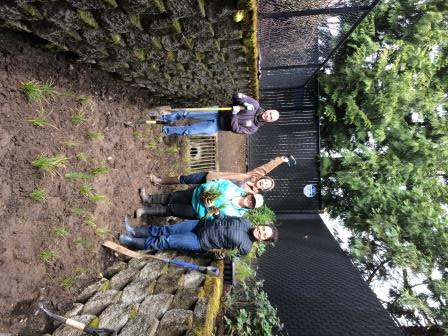 JCWC staff decided to replace our usual weekly meeting with planting the project! Plugs of slough sedge and running sedge, as well as several sword ferns and Oregon grape plants, were installed on the site last week. Many hands made for lighter work!