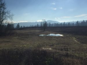 Entered the park from the east side – Wildwood trail and explored most of the east side. All was fairly quiet, as expected this time of year. I saw two hawks (not sure what kind), two Kestrels perched at the top of Doug firs warming themselves in the sun, and a few crows (maybe a few short of a murder). I was noting new green growth; what I could identify was yarrow, lamb’s ear, what I think was foxglove. The vernal pond that forms on the northeast side of Summit Lane is now present (see image).