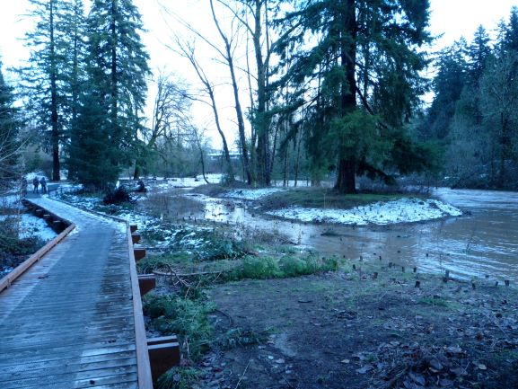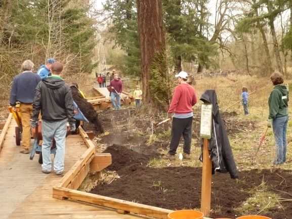 The Ardenwald-Johnson Creek Neighborhood Association has long cared for Tideman Johnson Park through periodic community events. In 2007 we sought to establish a permanent community stewardship group to build on the restoration work completed by the Bureau of Environmental Services through the Lents Interceptor project. That project reversed decades of erosion that had swept away 5-feet of creek bed, exposing the sewer pipe beneath and destroying healthy stream habitat. Benefits of the project included reintroducing tons of boulders, logs and gravel to restore natural creek habitat, reconnecting Johnson Creek to flood channels, and building a boardwalk path through sensitive wetlands.