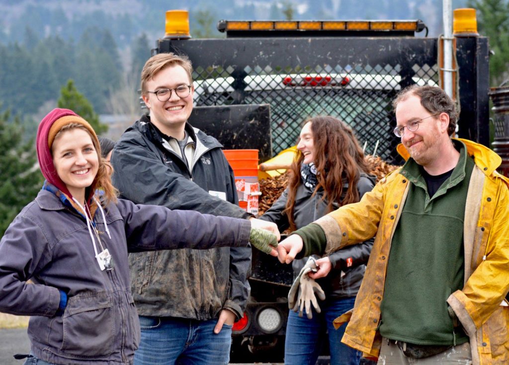 Current AmeriCorps Member Jack Halsey with supervisors Courtney Beckel and Noah Jenkins, and Portland Parks and Recreation partner Susan Hawes. Photo by Colin Durfee