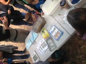 Envision a park scene, buzzing with volunteers and staff setting up folding tables that will be home for the next few hours to crawly creek friends known as aquatic macroinvertebrates. There are arts supplies, water bug coloring books, dress-up butterfly wings and aquariums being arranged at recreation stations to welcome dozens of families from Multnomah and Clackamas Counties. Anticipation and excitement begins to replace any previous worry of rain. The stage is being set for Science in the Park, a first-ever event of its kind planned by JCWC in partnership with North Clackamas Urban Watersheds Council (NCUWC).