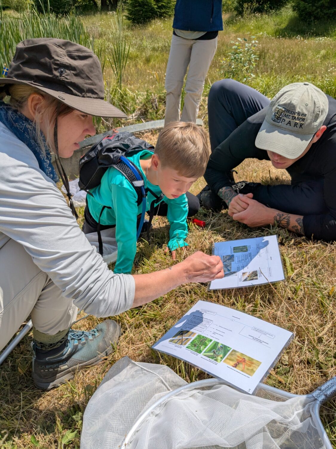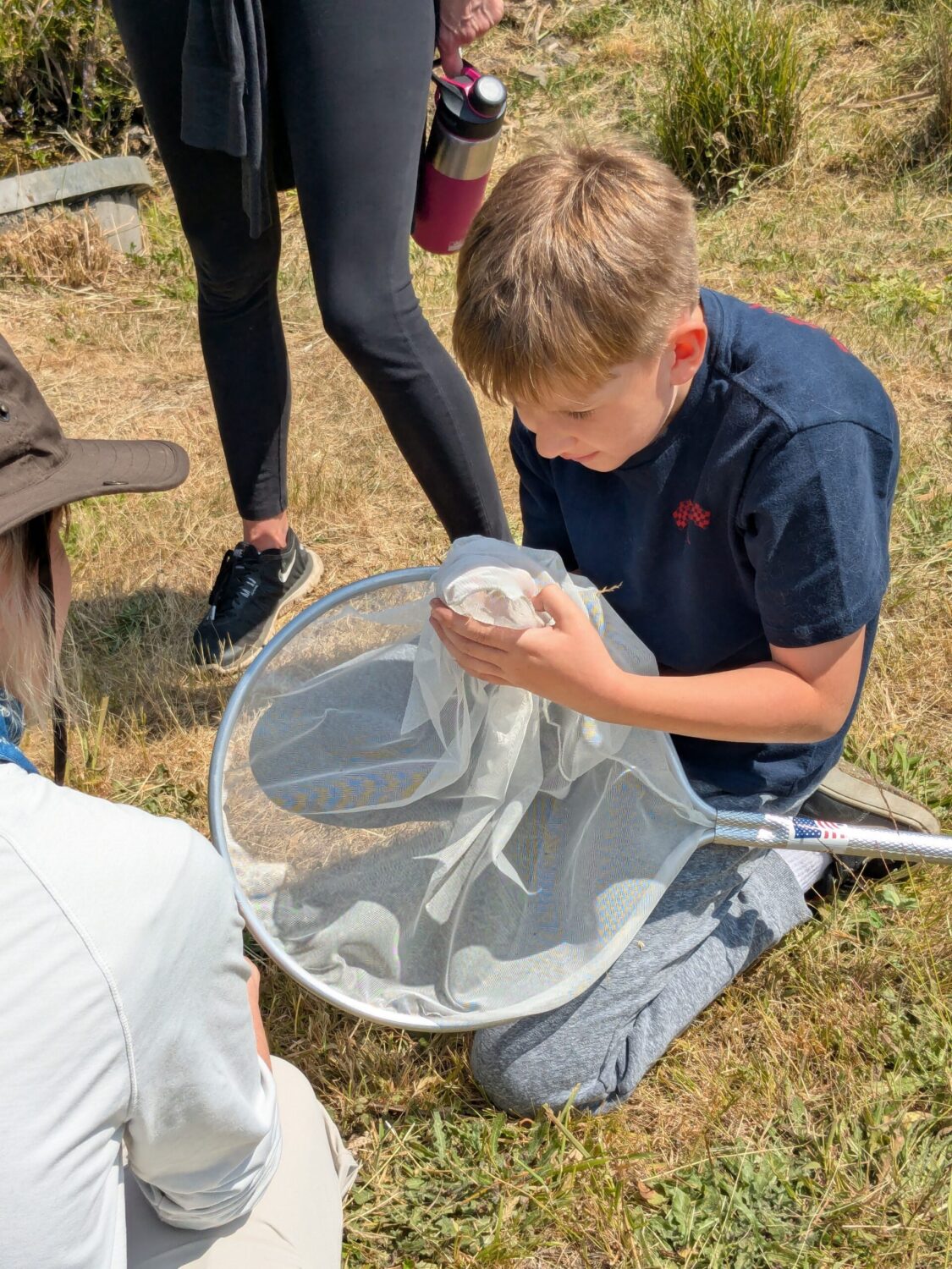 After a lesson on how to catch, hold for ID, and release odonates (dragonfly and damselfly are part of the odonata order), everyone was able to spread out while exploring the area and delightfully yell out, “Caught one!”. Age was not a determining factor for skill with the younger participants teaching the eager, older ones best techniques.