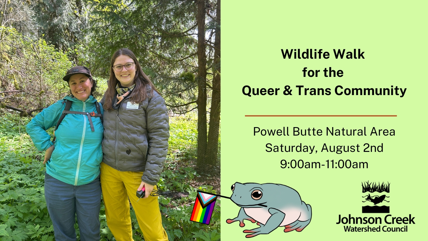 Join Johnson Creek Watershed Council and the City of Gresham in an effort to track amphibians in Gresham’s stormwater ponds! Surveyors will spend time wading through stormwater ponds collecting data on amphibian egg masses of four different native species. These surveys are part of a regional effort to help us learn more about amphibians and […]