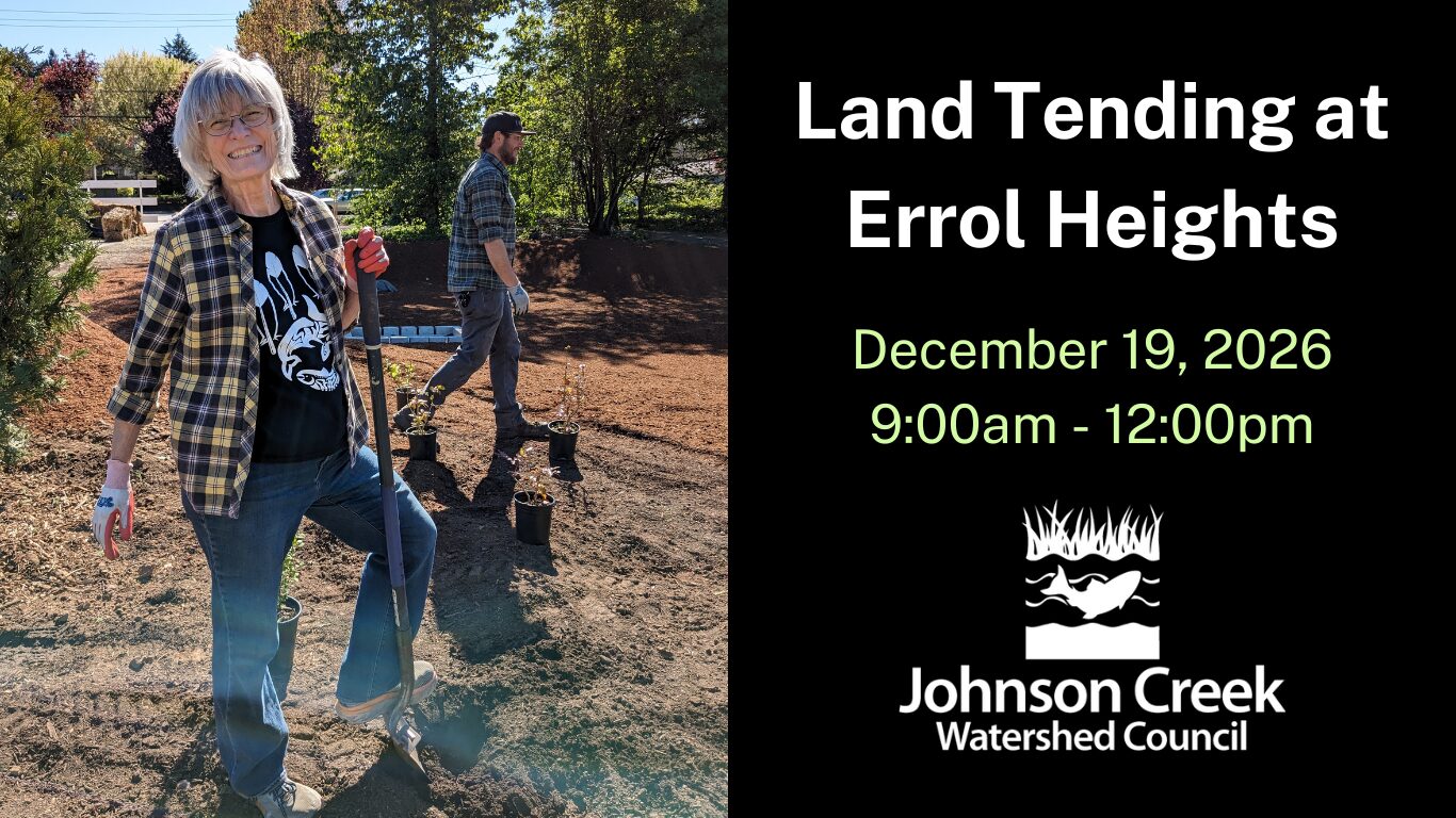 Join the Friends of Errol Heights, Portland Parks & Recreation, and Johnson Creek Watershed Council as we gather at Errol Heights Park for a morning of Land Tending! Revegetation, selective plant removal, and trash pick-up encourages plant and species diversity and builds habitats for a healthy watershed.