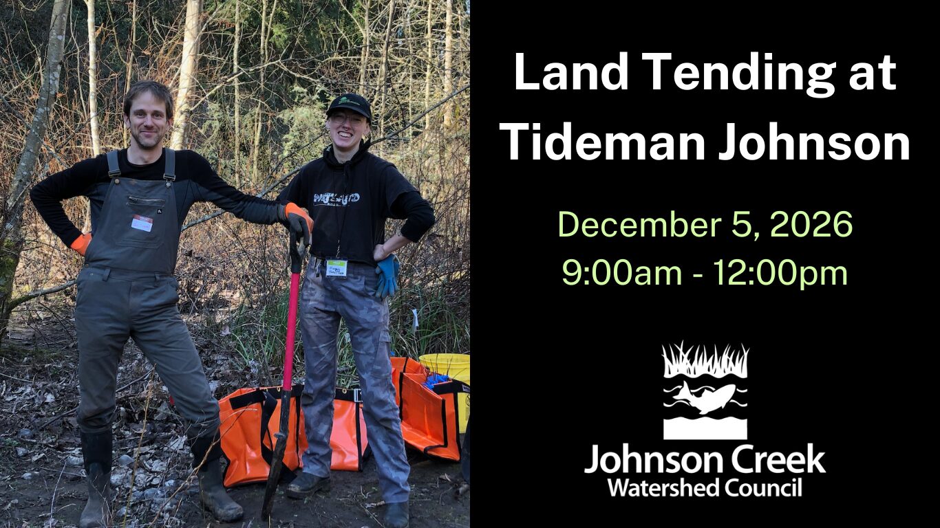 Join the Friends of Tideman Johnson Park, Portland Parks & Rec, and the Johnson Creek Watershed Council for a morning of land tending! Tideman Johnson is a small but sweet park along Johnson Creek and the Springwater Corridor Trail in SE Portland. No experience necessary!
