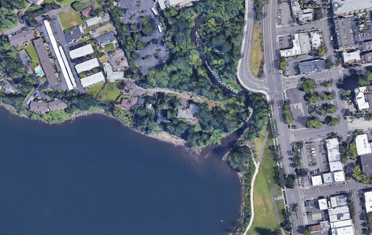 In 2011, the JCWC implemented a large wood restoration project in this area that was mostly successful, however the complexities of the local hydrology and limitations to how the log structures were constructed led to much of this wood breaking loose and floating downstream. This area is very important to salmon and steelhead populations, especially spring Chinook because lower Johnson Creek is a cold water refuge relative to the Willamette River. Anadromous fish en route to spawning in Johnson Creek and also those destined for tributaries in the Upper Willamette basin can use these structures for thermal refuge.