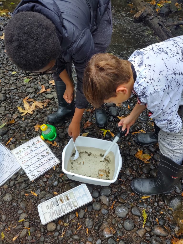 Columbia Springs bug out scavenger hunts, tree activity, un-nature trail activity, and salmon habitat scavenger hunt