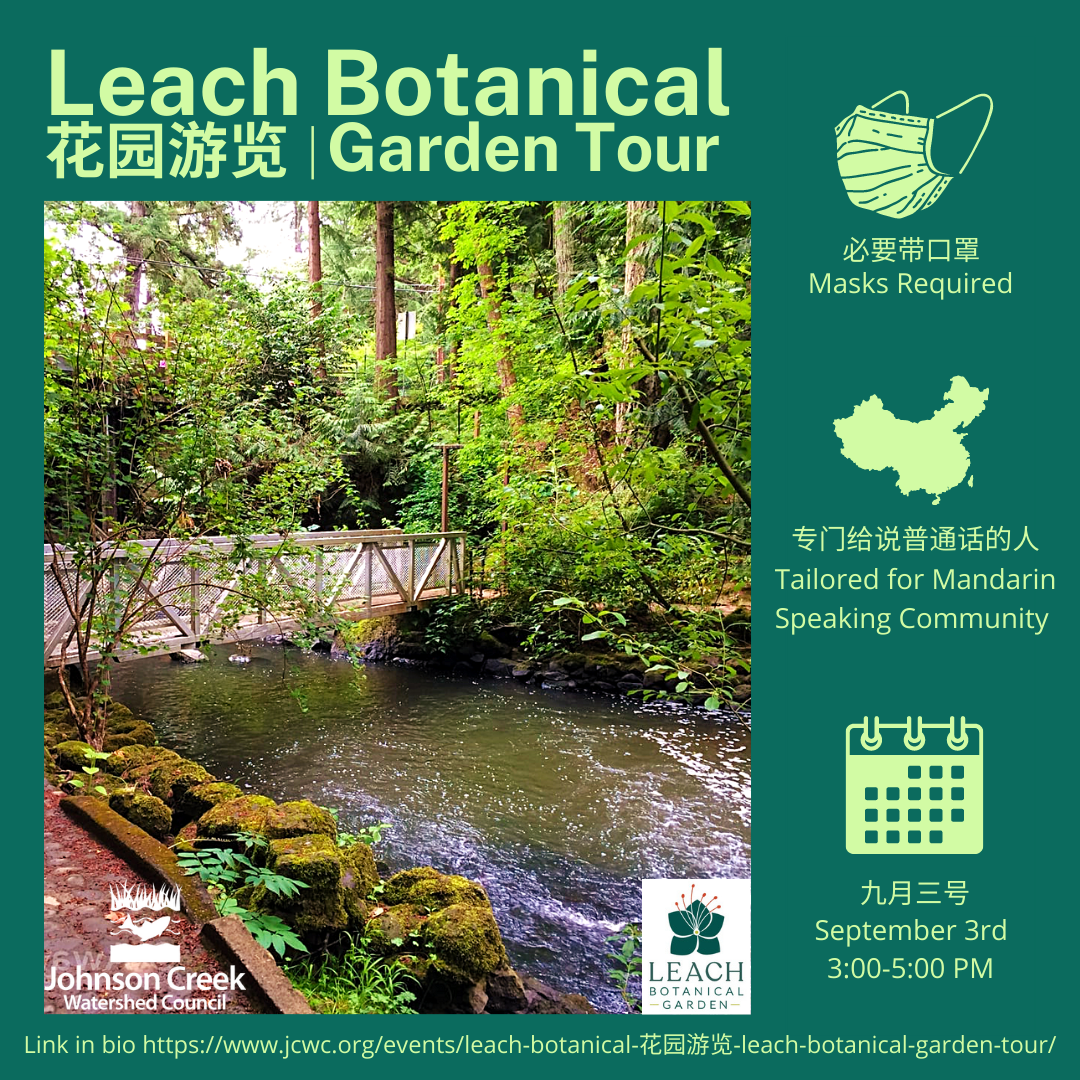 Overall, this internship and working as a part of the Johnson Creek Watershed Council has been an incredibly rewarding and enlightening experience. I am forever appreciative of having the opportunity to take part in such an amazing organization and work with great people. I was able to learn so much more about environmental stewardship as well as how it all ties back to my Asian identity and how I can contribute to both the environmental and Chinese community!