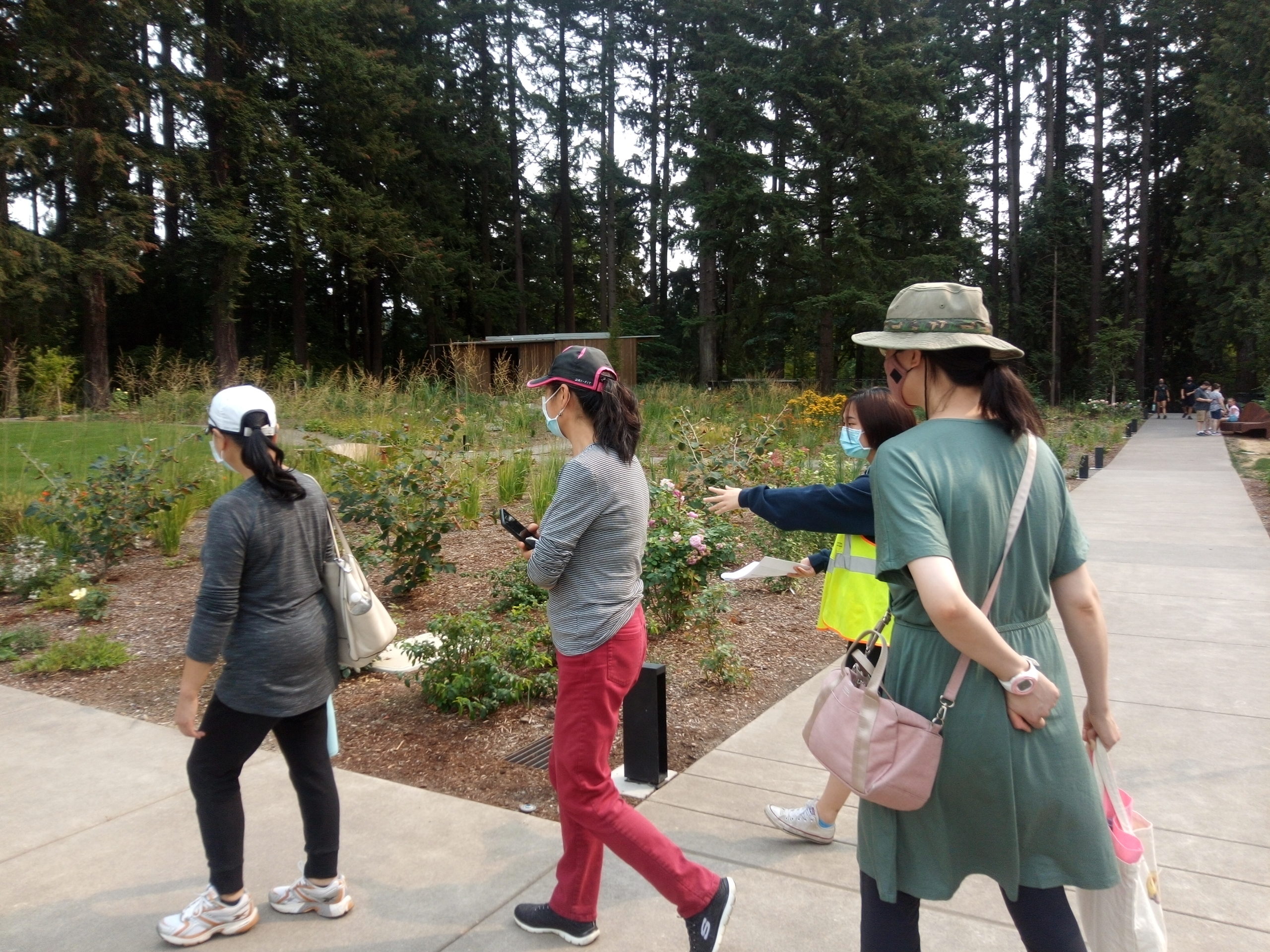 在我自己与Johnson Creek Watershed Council的活动中,我自己尝试了将这些解决方案结合起来,希望可以帮助消除语言障碍。九月初的时候,我用中文在 Leach Botanical 公园为住附近的人举办了一个游览。这个游览是专门给说普通话的华人,主要希望是可以用一种对自然感兴趣的华人可能更熟悉的语言和方式来让他们了解这片环境。这个游览探索了公园中很多的令人惊叹跟有趣的部分:新建的树木步道、小石屋,等等。