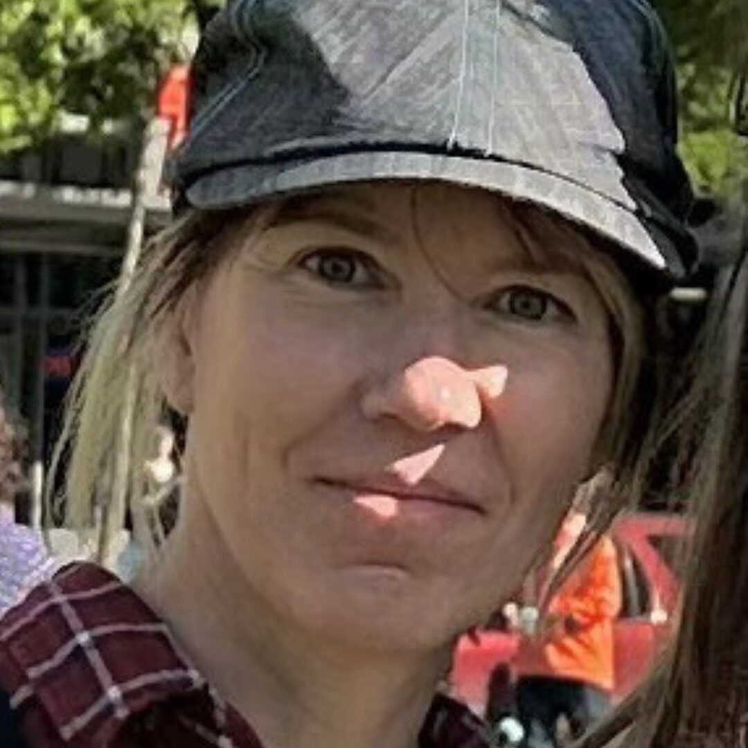 Photo of Holly From the shoulders Up. She is white with long blonde hair, wearing a green flannel.