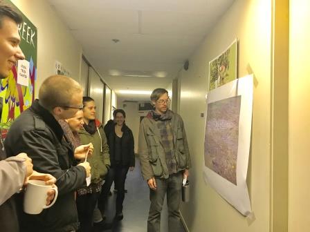 Surveyors finished signing up for survey dates as small groups began walking down the hallway, observing posters of redds and fish, with data sheets printed one-sided on scratch paper – at the end of the hall, they found an example of how data for this mock survey should have been filled out.