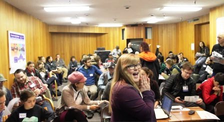 “While you’ve been sitting here, the hallway has been becoming a creek – that’s right, right now you’ll get a chance to participate in a waders-free survey to practice recording different types of data!”