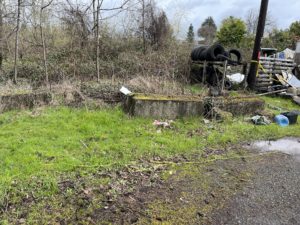 On the east side of Johnson creek, there was a small amount of litter. The refuse from the ‘dump’ next to the park is creeping over into the park property, although I don’t know where the property line is (see photo).