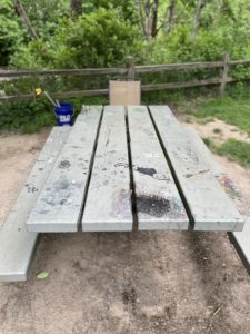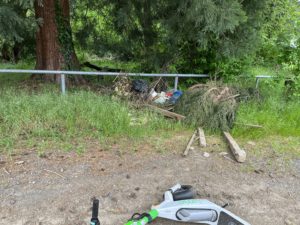 The confluence of the creeks was lovely (pic). There is a chair at the picnic table near JC, and the table is in bad shape (pic). On the east side of JC, there are 2 dump sites which I think are on park property (pics). Otherwise, that “wild” space was pretty clean.