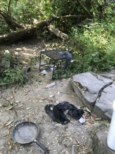 The signs on the trees are a nice addition. Because I was wearing shorts, I did not venture over the fence to get 2 large cardboard boxes on the east side of Crystal Springs Creek close to the beginning of the pathway leading to the sidewalk. I can pick them up next time. Also, there is a small mattress at the end of that same pathway as you leave the park on the right (see pic). There are signs of camping in the spot on the west side of Crystal Springs Creek at south corner of the park right by the water. Lots of trash there and some ammunition (?), either live or spent- plus a few other items (see 2 pics). I saw one person waking up w/ sleeping bag plus small amount of gear under a tree on the east side of CS Creek.