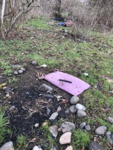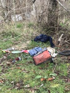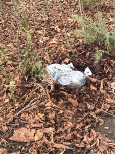 Of a bag of items buried on the east side of JC, down the path by the 2nd camping prohibited sign