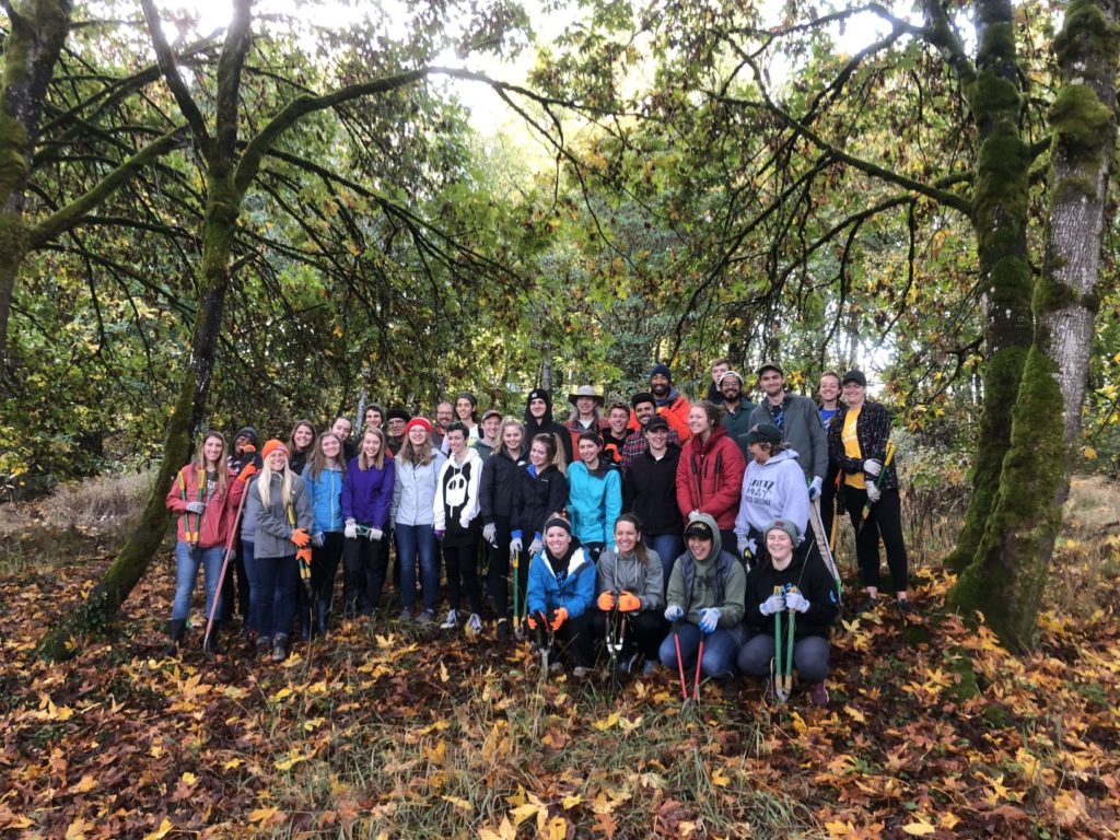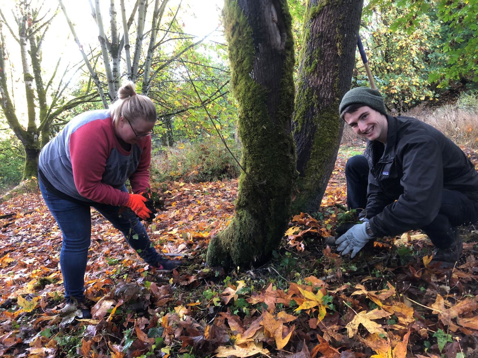On Saturday, October 27th, 35 volunteers joined us to remove invasive ivy! We were joined by Groups from Playworks AmeriCorps, La Salle High School, and Cleveland High School’s National Honor Society, along with neighbors. Together these volunteers, JCWC and Portland Parks & Recreation cleared thousands of square feet of invasive English ivy. We focused primarily on saving trees from climbing ivy. Strongly established ivy is full of water, and its combined weight can be heavier than the tree itself! If left untreated, this ivy will eventually kill native trees. This causes gaps in canopy cover, which reduces shade. In turn, this lack of shade can raise nearby stream temperatures, which is dangerous for salmon populations. In non-riparian areas, the sunny spots caused by ivy’s tree tipping can promote the invasion of other invasive species, while weakening soil and causing erosion. It is astounding how one species can cause such widespread changes in a landscape.