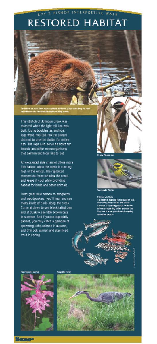 The final design of the interpretive panels is finished!   The example to the left is the fifth panel, “Restored Habitat”.