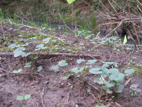 This was my first time out alone as a park steward so I wanted to get a good lay of the land and assess where the problem areas are. I started by pulling up some blackberries near the road, but quickly realized I was going to need a shovel to dig up the roots of the thicker vines. So I walked into the woods toward Johnson Creek. There was sporadic English ivy and Himalayan blackberries, I also came across Yellow archangel. There is Garlic Mustard on the fringe of the creek bank, so I decided to pull some of it up, clearing a few square feet. After that I followed a stomped out path along the creek seeing mostly ivy and garlic mustard. I ran into a private property sign and turned back. About half way I detoured and starting heading up the butte canyon. I found the switchback and made it to the upper portion of the park. This area’s biggest problem is English Ivy. I decided since I had walked all the way up there I might as well pull some of it. So I worked my along the hill and pulled up about 8 square feet. I came back down the hill a different way and stumbled across a deer trail with fresh tracks and scat. The tracks could have been coyote I’m not sure. On the way down I discovered some pretty nasty blackberry vines which I had not seen when I came up with Susan and Mart. I emerged from the forest and back to my car. Since this site is so huge I decided to then drive up Barbara Welch Blvd. and get a quick inventory of area 2. I found the pull out on the side of the road and started walking up an old maintenance road. This area looked pretty clear of invasives, although I wasn’t able to poke around for too long. There was some ivy and blackberries. Also there looked to be some areas where people had slept but no camps. Overall it was a fun trip and I now have a good plan of attack for removing invasive species.