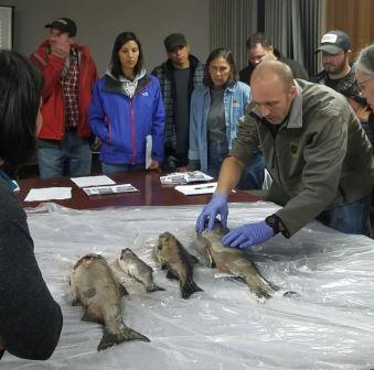 When the lights came back on, the carcasses came out on to the table! An opportunity to distinguish the differences between salmonids on the table, and the pervasive smell of fish carcass, wrapped up the night. Check out some of those close-ups below!