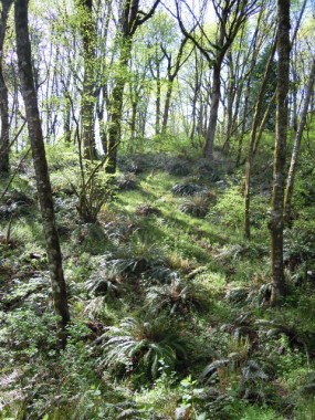 “Spent some time wandering and found an unmarked ivy patch by the fuel oil tank at the old home site. Pulled all I found and also dug out blackberry crowns on the hill above the old home site. Just a small patch I found under some dead alder (400 sq ft)…..it’s already getting tough to spot between the nettle and salmon berry….. There’s also ivy at the bottom of the ravine, spreading up from the houses below…Lots of wildflowers coming in – Trillium, Clarkia, violas.”