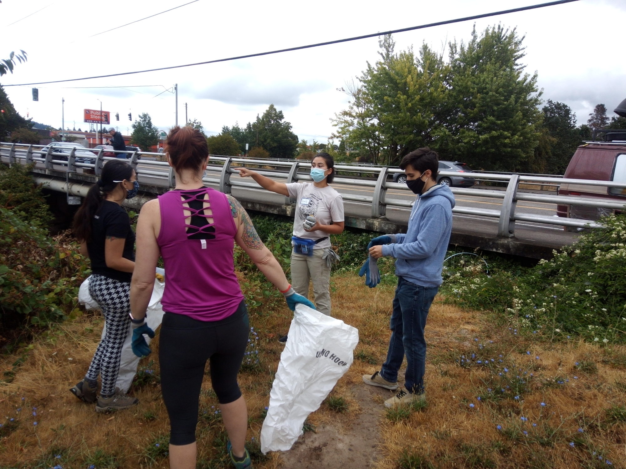 Project partners— including Portland Parks and Recreation who helped plan, lead and support Parks teams, North Clackamas Parks and Recreation who provided site support as well as trash hauling, the City of Gresham who hosted a site and helped recruit, SOLVE and American Rivers for providing clean-up supplies, Ground Score Association for doing pre-clean-up outreach to campers, Sunset and Hoodview for providing hauling and disposal, Rose CDC for providing interns Dima and Liana to help us do outreach for the event, and our bilingual nature interns Khan Tung and Helen Chen who teamed up to lead a site.