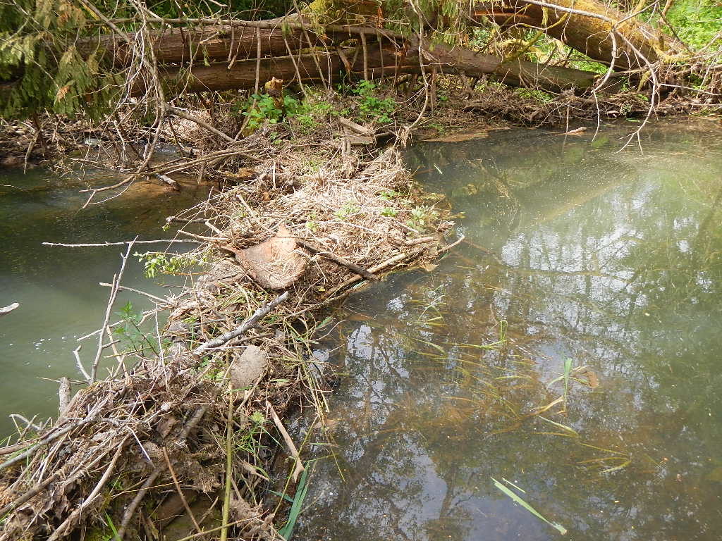 At this location we seen the third beaver in the whole reach. The first time we spotted this dam it had been breached from what the crew and I thought due to the flooding and higher water levels earlier in the spring. This time it looks like they had repaired it.