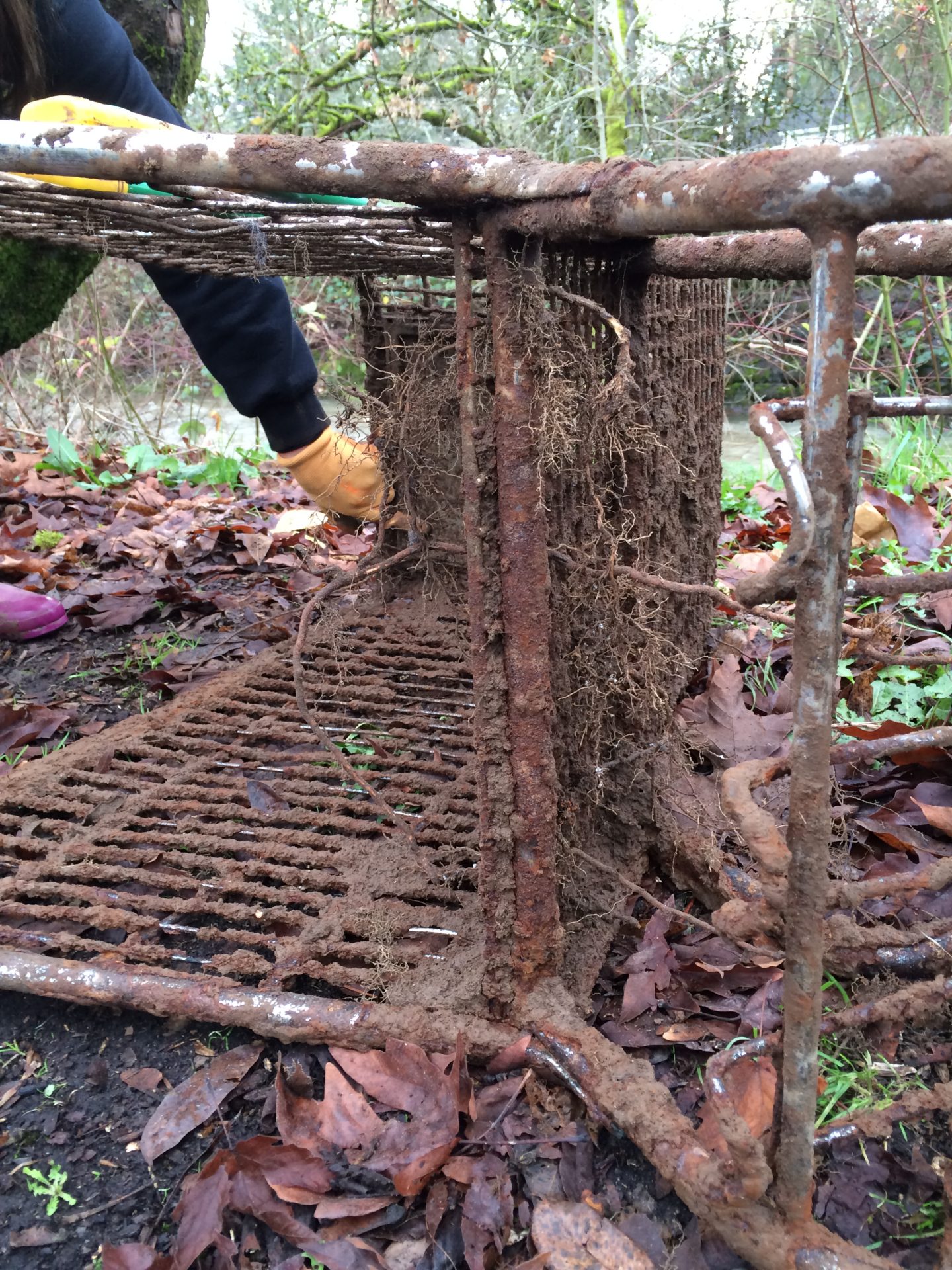 After water testing, students walk over to the Springwater Trail site for hands-on restoration work. Trash pick-up and invasive species removal are what the students will be focusing on until springtime. In November, students removed several different invasive species growing there (Armenian blackberry, clematis, deadly nightshade, and more). The shovels intended for digging out root balls were useful as students uncovered a fantastic trophy: a grocery cart partially buried, with the root balls of the blackberry tangled in the cart itself! The site will be planted in the springtime, after several more service learning trips through which students will have been a part of the planning process by prepping the site. Planting is the ultimate goal that students agreed upon on their very first visit. This is some of the students’ second or third year returning to this site and they have developed a sense of ownership there, and their goals of removing invasive species to make way for planting will contribute to the health of the watershed.