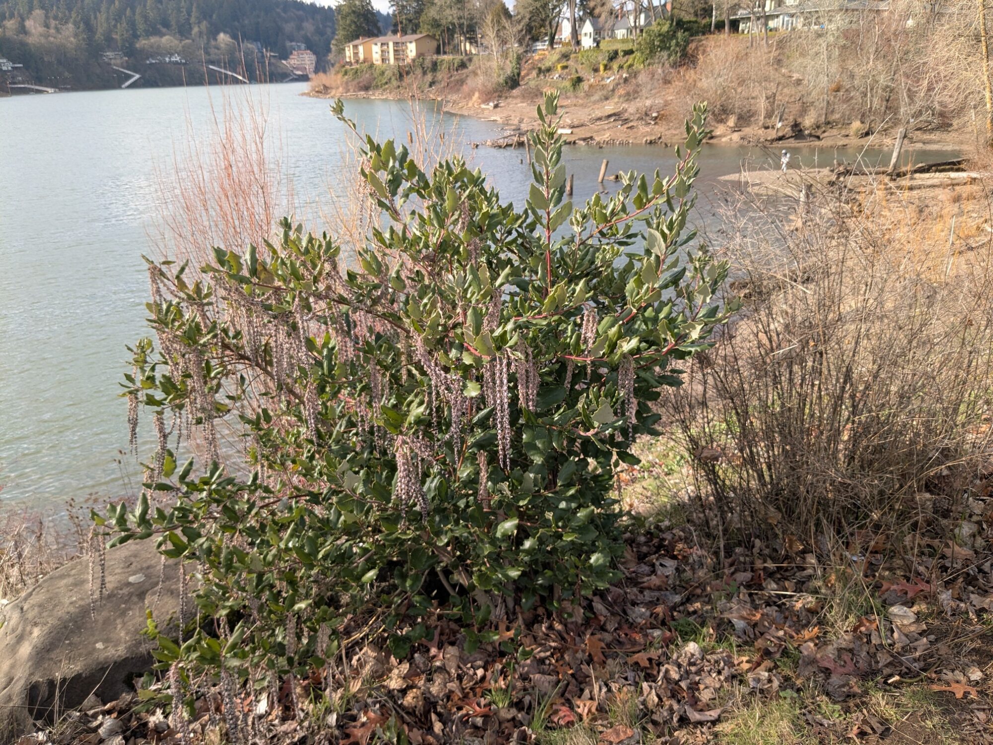 In addition to providing winter blooms to the garden, coast silktassel is deer-resistant, and offers shelter and food for a variety of bird species. It also has utility as a hedgerow plant, making it one of very few native evergreen plants in our area that can be planted en masse as a privacy screen.