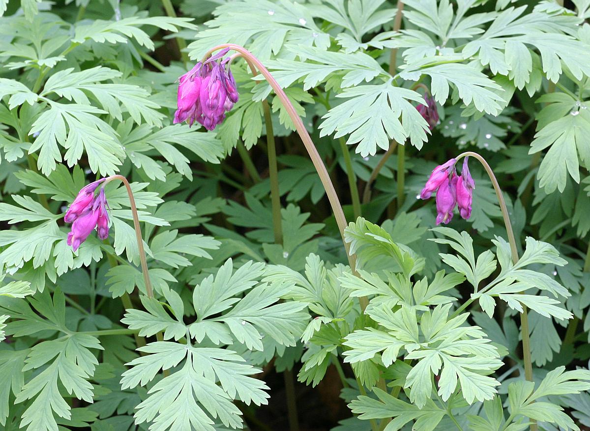 Native Replacements:  Woodland strawberry (Fragaria vesca) is an elegant, shade-tolerant perennial ground cover that does well in habitat used by yellow archangel.  Bleeding heart (Dicentra formosa—pictured), with beautiful pink flowers and attractive foliage, spreads freely, and would also make an excellent replacement for yellow archangel.