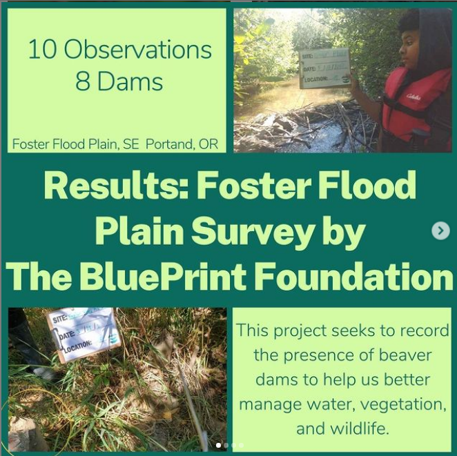 Excited to share out our first 2021 Beaver Survey data! The Blueprint Foundation surveyed Foster Floodplain Natural Area and observed 8 dams, 1 beaver chew and 1 beaver slide. This is great news and indicates a high beaver presence at Foster Floodplain.